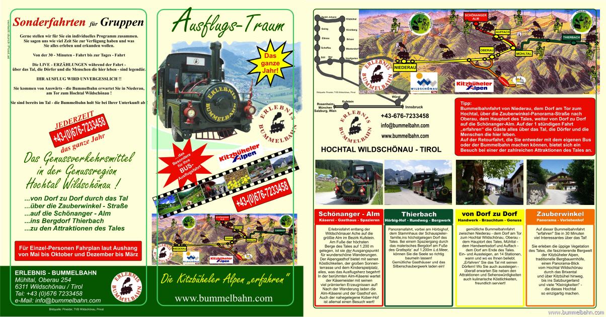 Machen Sie mit Ihrer Gruppe einen Ausflug oder "Abstecher" in das Hochtal Wildschönau und "erfahren" Sie dieses Tal auf seine schönste Art - mit einer Bummelbahnfahrt !